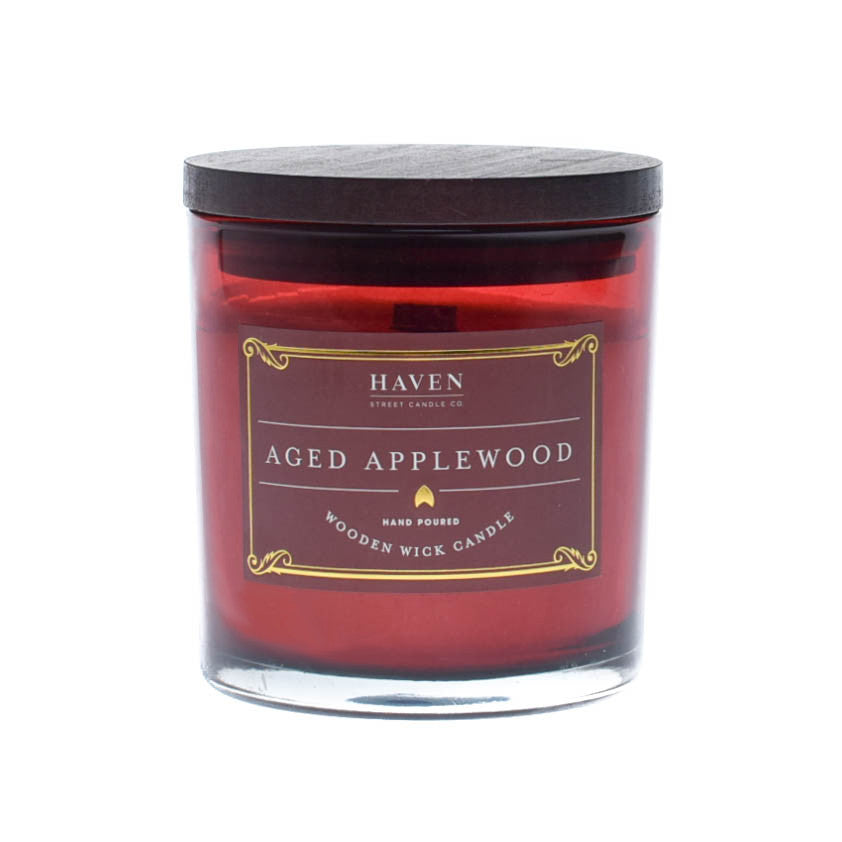 Aged Applewood is a richly fragranced candle with a wooden wick that burns with a crackling effect. This is a sophisticated blend of red apples with cranberry, mulberry and juicy plum, warm cinnamon, crushed clove, and musk-infused oakwood. This scent for perfect for any time in the year!