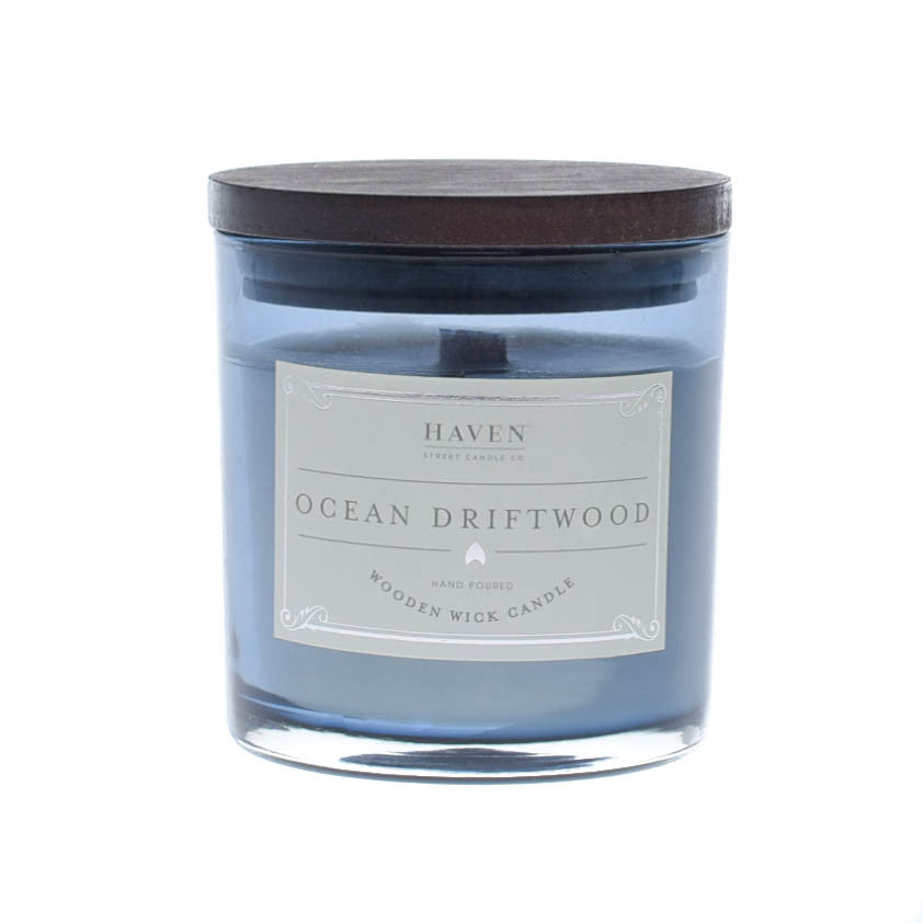 Ocean Driftwood is a richly fragranced candle with a wooden wick that burns with a crackling effect. This is a sophisticated blend of sparkling ozone freshness drifts through clean white jasmine, soft cyclamen and tender lily blossom touched with a splash of tropical peach and warm, musk-infused. This scent for perfect for any time in the year!